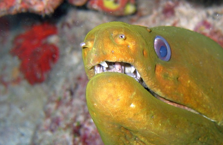 Specimens to be admired in the tank include the Green Moray (Gymnothorax funebris), the Honeycomb Moray (Muraena melanotis), the Lookdown (Selene vomer), the Queen Triggerfish (Balistes vetula), the Doctorfish (Acanthurus chirurgus) and the Atlantic Spadefish (Chaetodipterus faber).